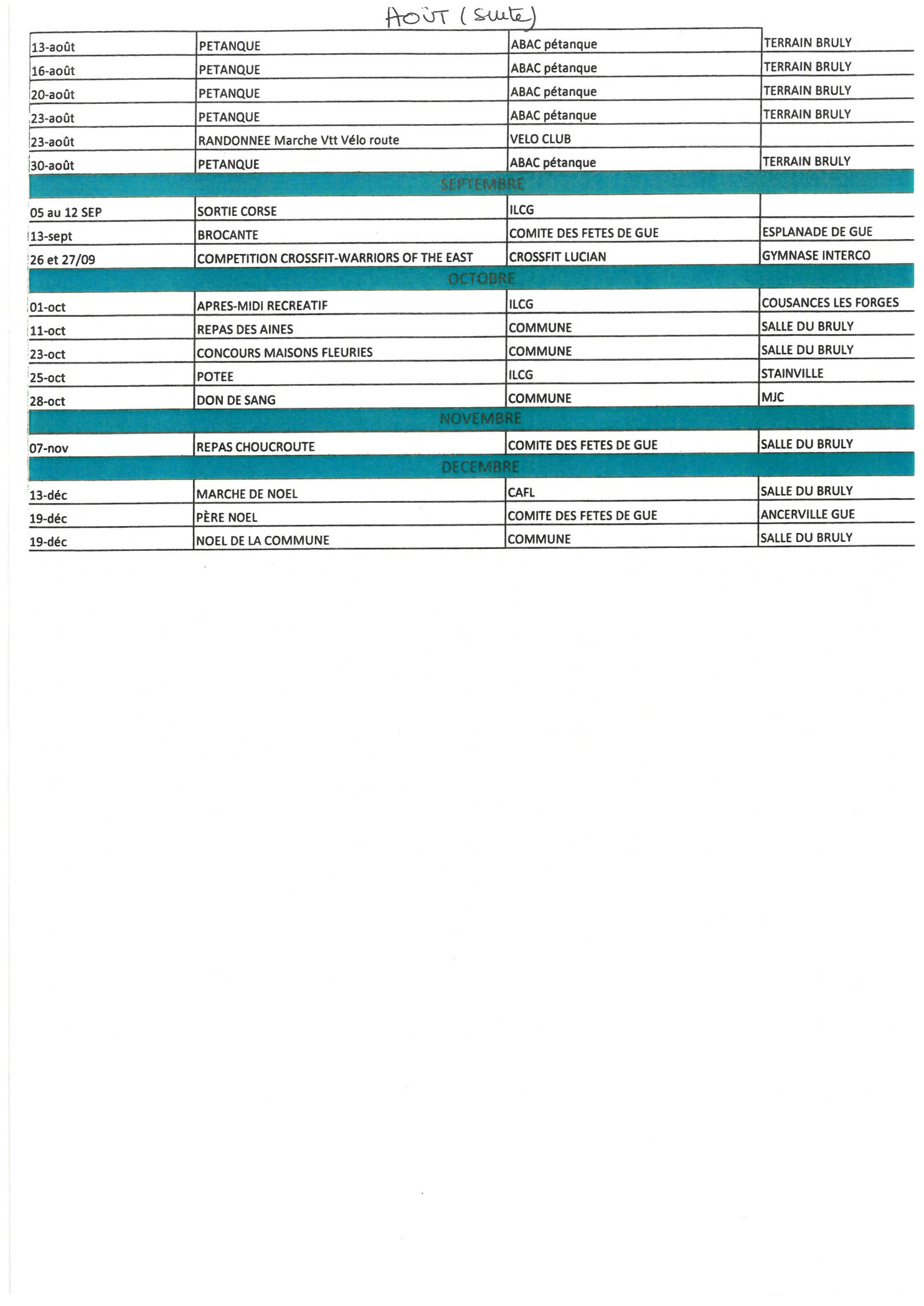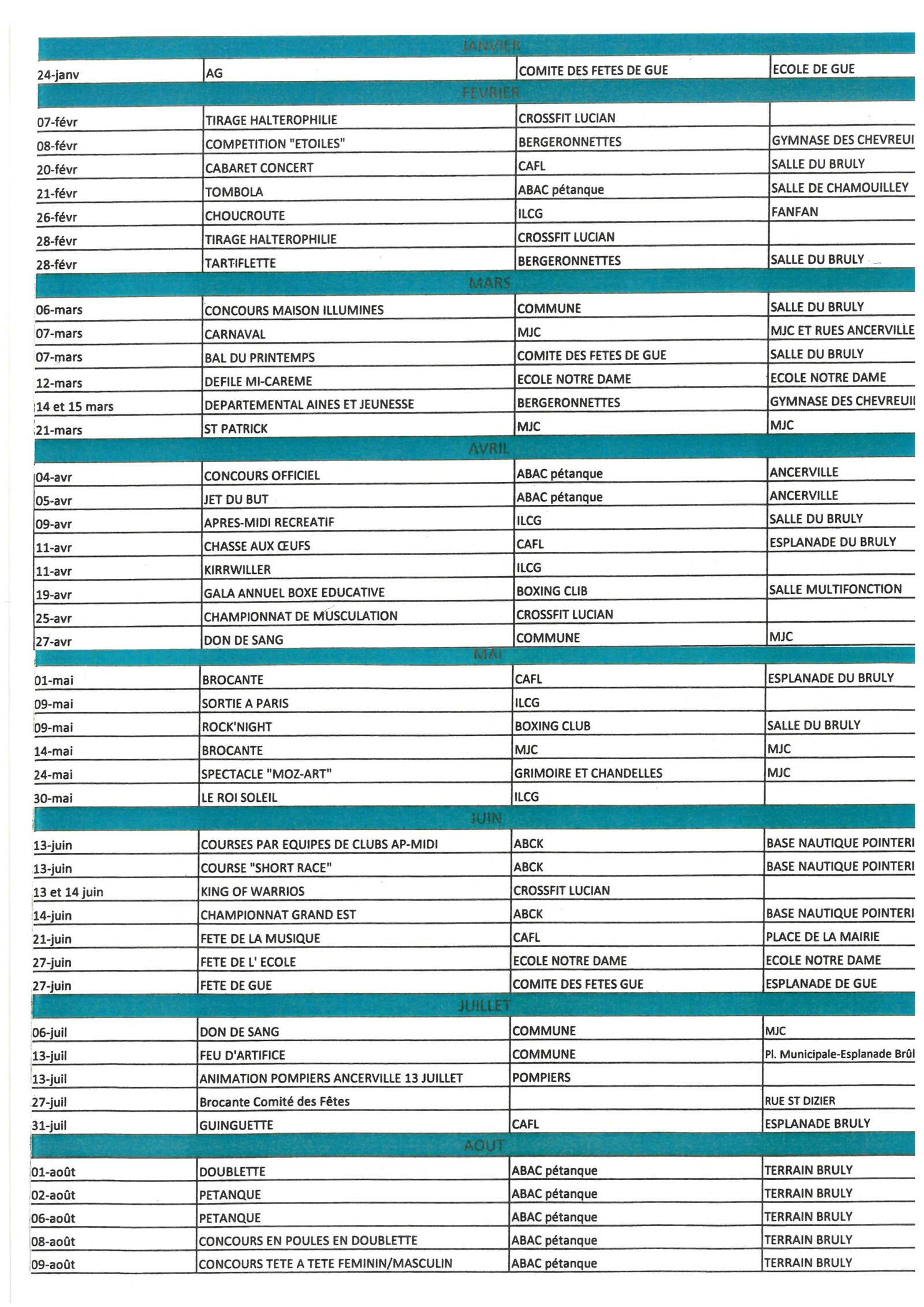 CALENDRIER DES MANIFESTATIONS 2026 - ASSOCIATIONS D'ANCERVILLE-
